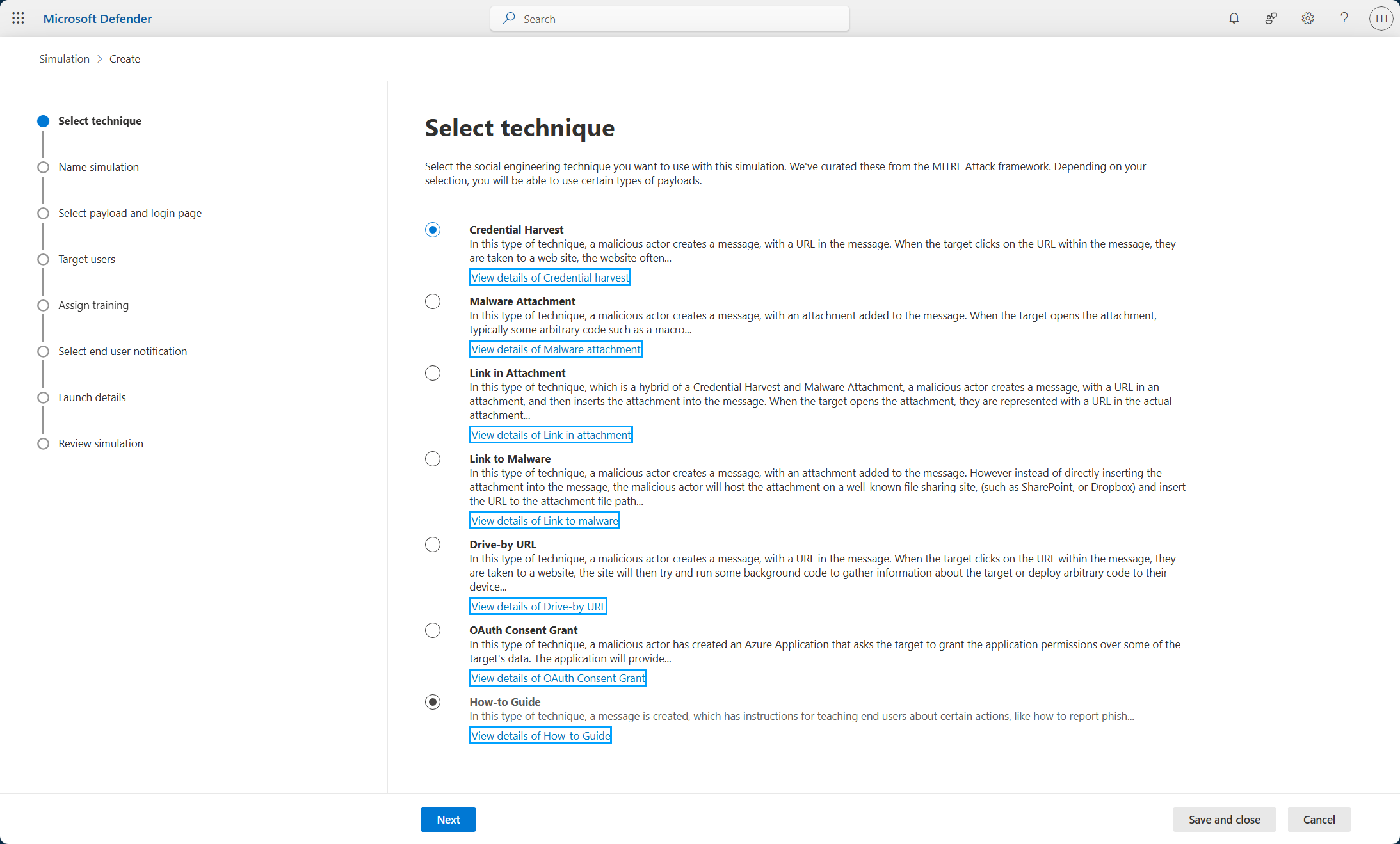 Trong ví dụ minh họa, chọn Credential Harvest