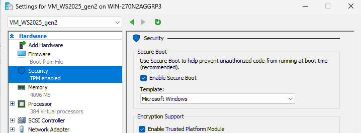 Generation 2 VM with Windows Server 2025