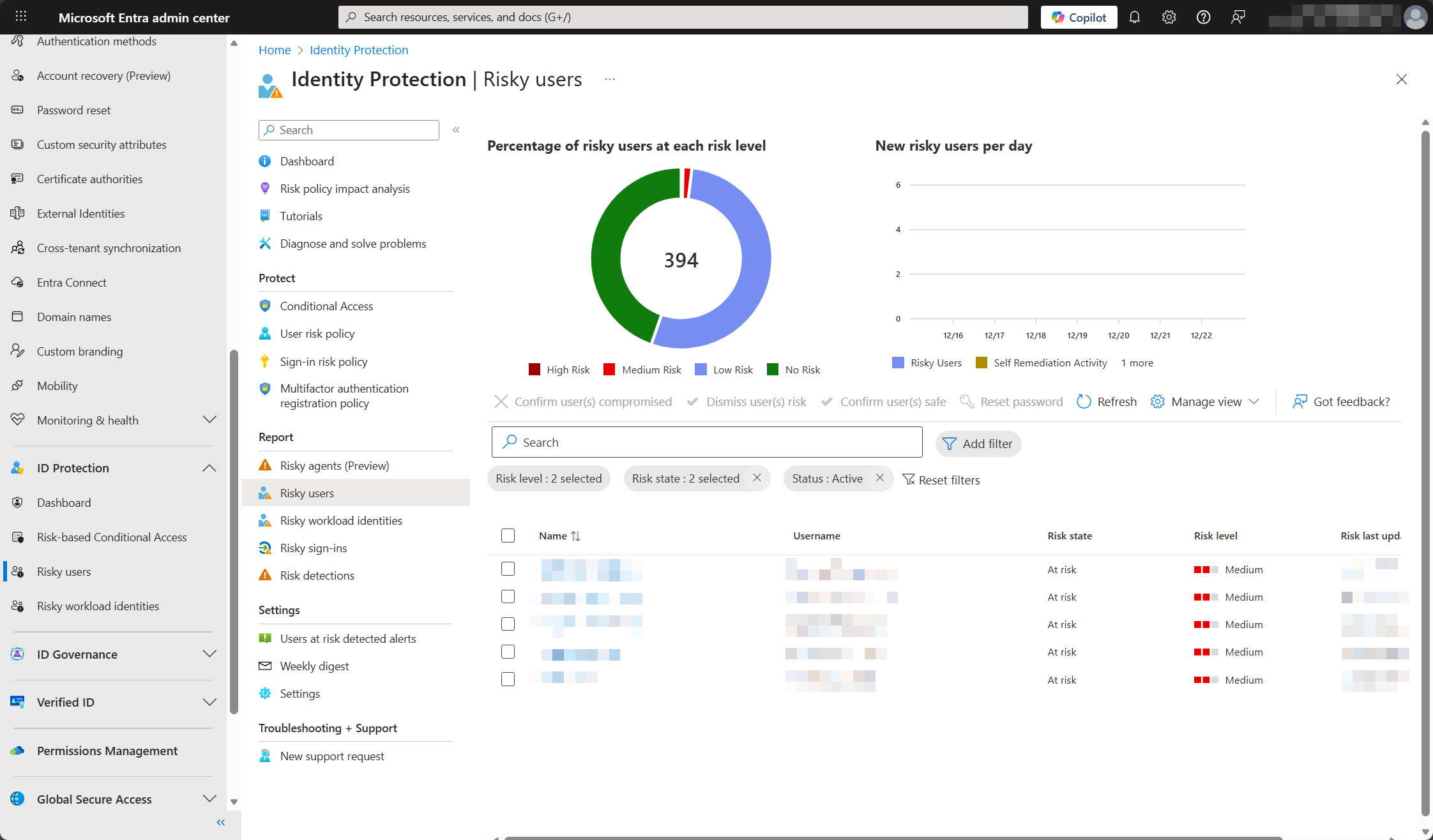 Giao diện của Entra ID Protection sẽ gồm 4 chức năng chính là: